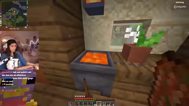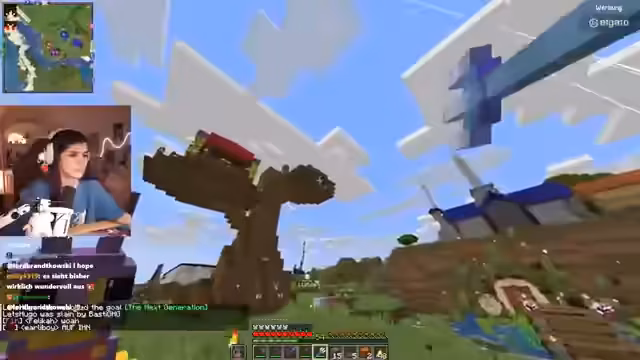 01:04:27Während des Streams interagiert die Streamerin intensiv mit dem Chat. Sie diskutiert mit Zuschauern über verschiedene Aspekte des Bauprozesses, wie Materialwahl und Dekoideen. Sie zeigt sich offen für Vorschläge und setzt diese teilweise um. Besonders interessant ist ihre kreative Lösung für den Verbindungsbau zwischen Baum und Plattform, die spontan ausprobiert wird. Gleichzeitig teilt sie persönliche Gedanken über ihren Baustil und ihre Entwicklung in Minecraft im Laufe der Zeit.