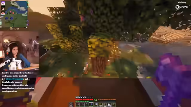 00:35:19Nach einem Exkurs über das Alter und die damit verbundenen Privilegien wechselt die Streamerin das Thema zu ASMR. Sie teilt ihre Vorlieben für bestimmte ASMR-Videos, insbesondere solche, in denen Gegenstände wie Slimes mit Wachsüberzug zerdrückt werden oder Cardboard Fidget Toys aus Haushaltsgegenständen hergestellt werden. Sie spielt verschiedene ASMR-Sounds ab und kommentiert diese humorvoll. Anschließend kehrt sie zum eigentlichen Thema des Streams zurück: dem Craft Attack-Projekt. Sie analysiert ein Referenzvideo für den Bau ihres Baumhauses, stellt fest, dass wichtige Details zur Baumkrone fehlen und beschließt, ab diesem Punkt freestyle weiterzubauen. Sie plant, eine Blockpalette mit Fichtenholz, hellem Terracotta und Pilzen zu verwenden und den Baum mit Glühwürmchenbüschen, rosa Blüten aus Lush Caves und leuchtenden Glowberries und End Rods zu dekorieren, um eine natürliche und magische Atmosphäre zu schaffen.