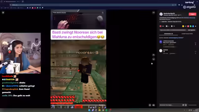 04:38:23Die Streamerin präsentiert ihre "Abomination" – eine vegane Lasagne mit Gurken, Sojasauce, scharfer Soße, Tomaten und Gurkensalat, die sie als "wilde Kombi" bezeichnet, aber für lecker befindet. Während des Essens wird die Kategorie zu "Just Chatting" gewechselt. Es wird über die Gesundheit von Streamern bei Craft Attack diskutiert, insbesondere über den Schlafmangel und die fehlende Zeit für persönliche Hygiene. Ein humorvoller Raid von "Kimi" wird erwähnt. Nach dem Essen, das schnell "inhaliert" wurde, um weiterarbeiten zu können, werden wieder diverse Crafting-Fragen geklärt, unter anderem wie man Goldbarren aus Goldklumpen herstellt. Es folgen weitere humorvolle Gespräche mit anderen Streamern, darunter "Schradin", der angeblich eine Schönheits-OP hatte, und "Sidney", der an einem Quiz teilnimmt. Die Streamerin reflektiert über ihre schnelle Essgewohnheit und die daraus resultierende Müdigkeit. Sie plant, Item Frames zu besorgen und ihre Elytra einzuziehen, um Fallschaden zu vermeiden. Die Abneigung gegen Matcha wird thematisiert, da sie bittere Geschmäcker generell nicht mag. Es wird über die Platzierung in den "Streamerinnen der Woche" gesprochen. Schließlich wird Haus Nummer 1 fertiggestellt, und die Planung für Haus Nummer 2 auf der zweiten Plattform beginnt, wobei eine neue Blockpalette mit Honeycomb-Blöcken und Terracotta in Betracht gezogen wird, um einen Kontrast zum ersten Haus zu schaffen.
