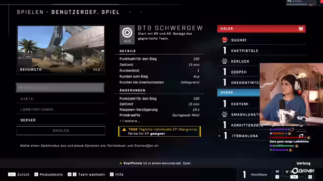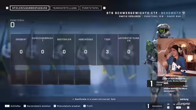 04:05:19Die erste Runde Capture the Flag beginnt, aber das Team wird von Fahrzeugen, insbesondere einem Flugzeug, dominiert, was zu Frustration führt. Es wird diskutiert, wie man das Flugzeug kontern kann und festgestellt, dass die Waffen ungeeignet sind. Die Streamerin äußert den Wunsch nach einer Map ohne Fahrzeuge für zukünftige Runden. Die Runde endet mit einer Niederlage. Es wird beschlossen, die Map und den Modus zu ändern, um ein faires Spielerlebnis zu gewährleisten. Die erste Runde wird als irrelevant erklärt, da sie nur dazu diente, die Schwierigkeit von Halo zu demonstrieren. Team Deathmatch ohne Autos wird als nächste Option gewählt. Die Streamerin stellt die Optionen für die nächste Runde ein, einschließlich der Anzahl der Kills und des Zeitlimits. Es wird nach dem Big Team Slayer-Modus gesucht. Es wird beschlossen, bis 70 Kills zu spielen und das Zeitlimit auf 30 Minuten zu setzen. Die Streamerin betont, dass die nächste Runde zählt und es keine Fahrzeuge geben wird. Die Streamerin erklärt, dass es jetzt nur noch darum geht, sich gegenseitig in die Schnauze zu ballern.