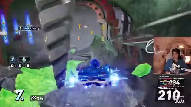 02:42:53Die Streamerin fragt nach Empfehlungen für die Item-Auswahl und entscheidet sich letztendlich für eine andere Option. Es wird über die Bedeutung von Teamwork und gegenseitiger Unterstützung diskutiert. Ein technisches Problem wird angesprochen, bei dem Ringe durch ein lila Portal eingesaugt werden. Es wird überlegt, welche Gadgets für das Rennen ausgewählt werden sollen und ob Jay mitfahren soll. Die Streamerin gibt zu, dass sie die Hälfte der Rennen ohne Gadgets gefahren ist. Die Streckenauswahl wird diskutiert, wobei die Radical Highway als Lieblingsstrecke genannt wird. Während des Rennens kommt es zu unerwarteten Ereignissen und Schwierigkeiten, wie z.B. das Abgeschnitten werden und der Einsatz von Items durch andere Spieler. Die Streamerin beklagt, dass sie ständig getroffen wird und kein gutes Item erhält. Es wird überlegt, wie man andere Spieler am besten behindern kann. Am Ende des Rennens erreicht die Streamerin den zweiten Platz und ist überrascht, dass es nicht Peter war, der sie überholt hat.