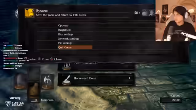 00:16:49Während des Trainings zum Asyl-Dämon tauchen technische Probleme auf. Der Streamer klagt über Internet-Ruckler, was das Gameplay beeinträchtigt und zur Unterbrechung zwingt. Trotz dieser Herausforderung wird das Training fortgesetzt, mit einem sehr spezifischen Ziel: den Boss fünfmal hintereinander ohne jeglichen Treffer (No-Hit) zu besiegen. Die Streamerin ist frustriert über ihre anfänglichen Schwierigkeiten und ihre Nervosität, auch wenn sie betont, dass die Grundlagen des Spiels beherrscht werden. Dieses repetitive Training soll das Selbstvertrauen für die eigentliche Herausforderung stärken und die Angst vor dem Bosskampf nehmen.