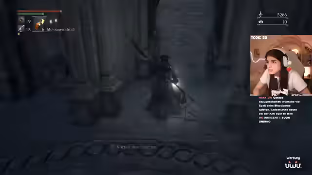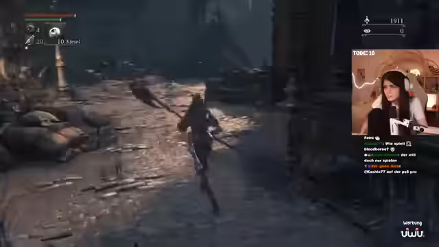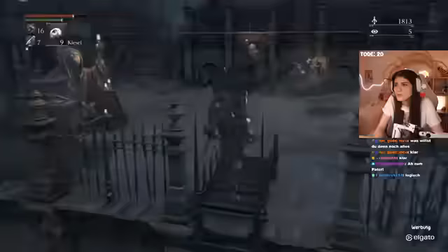 04:00:56Der Streamer erreicht die Kathedrale und startet eine neue Cutscene. Parallel dazu kündigt er an, dass Bloodbourne Teil seiner geplanten Serie von Souls-like-Spielen ist, bei der er auch noch Elden Ring und Sekiro in Angriff nehmen möchte. Er spricht über die angenehmere 30-FPS-Grafik und die als einfacher empfundene Pariermechanik im Vergleich zu Dark Souls 3.