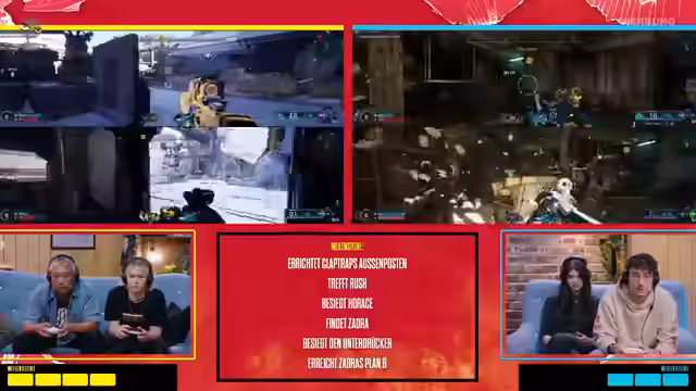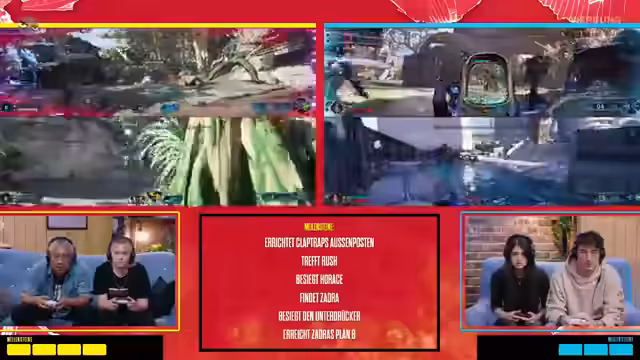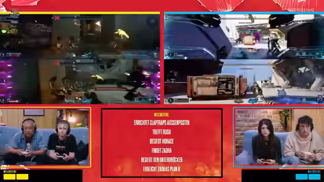00:09:38Der LiveStream startet mit der Ankündigung einer Borderlands 4 Session, in der das Team Timekeeper, bestehend aus Ian Budiman, vom Team Bold Hunter, Maluna und Mango, herausgefordert wird. Es wird erwähnt, dass über die Abende weitere Herausforderer wie Trimax mit Nico Stemmler, Milchbaum mit Leon sowie Nick Beats mit Krokobos antreten werden. Die Punkte der Teams werden vererbt, was bedeutet, dass die nachfolgenden Teams auf den Ergebnissen der vorherigen aufbauen müssen. Die Streamer diskutieren ihre unterschiedlichen Gaming-Erfahrungen, wobei einige Controller-unerfahren sind, was als zusätzliche Herausforderung im Couch-Splitscreen-Modus angesehen wird. Die erste Challenge ist ein Speedrun durch eine Story-Mission mit Meilensteinen, für die es Punkte gibt. Es gibt auch Punkte für Level-Ups und Minuspunkte für das Überspringen von Zwischensequenzen.