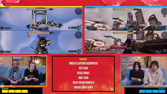 Das Team Timekeeper, bestehend aus Ian Budiman, Maluna und Mango, nimmt eine Borderlands 4 Herausforderung an. Ein Speedrun durch eine Story-Mission mit Meilensteinen steht an. Bonuspunkte gibt es für Level-Ups, Minuspunkte für übersprungene Cutscenes. Controller-Steuerung stellt zusätzliche Schwierigkeiten dar. Es folgen weitere Herausforderer.