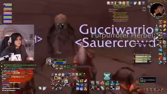 08:48:51Der Streamer und Gucci starten eine Escort-Quest in Stratholm, bei der sie nichts tun dürfen, um ihre Verkleidung nicht zu verlieren. Sie müssen einem NPC hinterherlaufen und dürfen weder Kisten looten noch Fähigkeiten einsetzen, was nervös macht. Am Ende muss ein NPC sterben, den sie beobachten dürfen. Nach Abschluss planen sie direkt den LBRS-Run, um die Quest weiterzuführen.