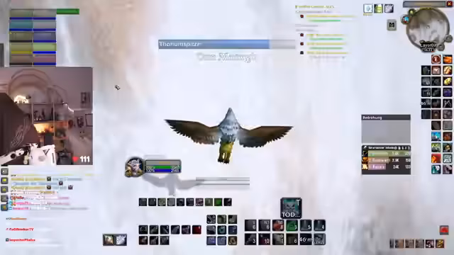 11:56:58Die Gruppe nutzt den Erfolg des letzten Upper Blackhawk Spire Raids, um eine wichtige Quest fortzusetzen. Durch das Abschließen des Dungeons erhalten sie ein Schlüssel-Item, das für eine weitere, anspruchsvollere Quest in der Oberen Blackhawk-Spitze benötigt wird. Es werden Ausrüstungsänderungen besprochen, wie der Wechsel zu einem Plate-Helm für mehr Tank-Stats und ein spezielles Trinket namens Agentum-Dämmerung, das für die aktuelle Situation als besser eingestuft wird.