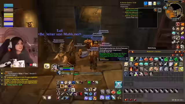 13:06:40Während der Bosskämpfe wird viel Wert auf die Kontrolle der Aggro und die Nutzung von Fähigkeiten wie Eiskältefallen und Schlafzaubern gelegt. Nach dem Erfolg werden die Drops analysiert, wobei es teilweise zu unerwarteten oder verpassten Beutegegenständen kommt. Die Suche nach spezifischen Items, wie einer Robe für den Hunter, wird zu einem wiederkehrenden Thema, was den Fortschritt im Spiel beeinflusst.