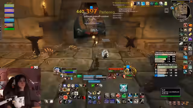 12:07:18Ein kritischer Moment im Kampf ereignet sich, als der Tank Euli durch eine Fehlpositionierung in Gefahr gerät und einen massiven Schaden erleidet. Der Streamer handelt schnell und setzt einen 'Schildschlag' ein, um Euli zu retten. Anschließend wird ein neuer Notfallplan für ähnliche Situationen besprochen: der Fokus liegt darauf, den Gegner mit der Fähigkeit 'Zorn' sofort zu entfernen und die restlichen Adds zu kontrollieren, um einen vollständigen Wipe zu verhindern.