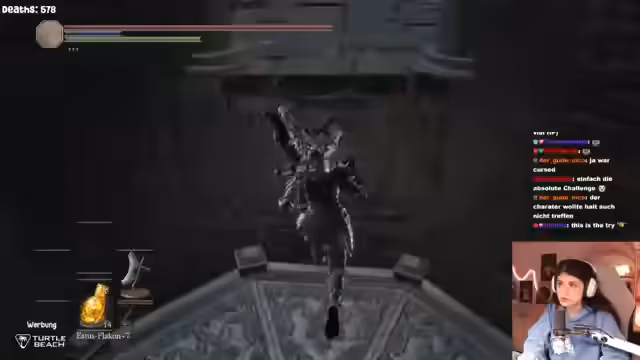 04:38:01Der Kampf gegen Midir fordert seinen Tribut. Der Streamer zeigt zunehmende Frustration und Resignation. Er stößt auf unsichtbare Angriffe, 'panic dodges' und verschwendet宝贵的 Heil-Tränke. Trotz Hinweisen aus dem Chat und gezielten Versuchen, bestimmte Muster zu erkennen, scheitert er immer wieder an der Kombination aus schnellen Angriffen und unvorhersehbaren Attacken. Die Versuchszahl steigt rasant an, und der humorvolle Ton wird von einer tiefen Erschöpfung und einem Verlangen nach Beendigung des Kampfes abgelöst.