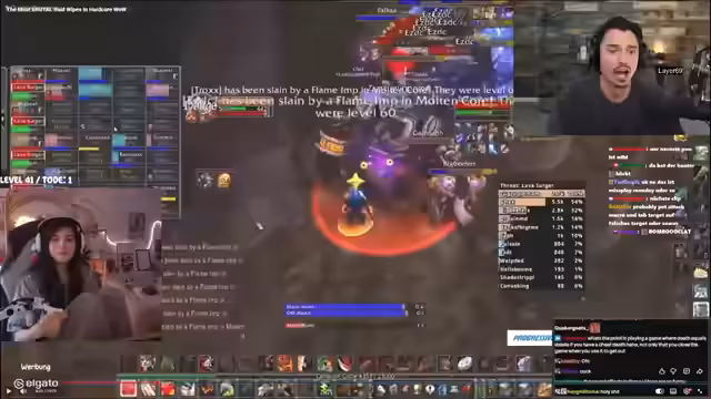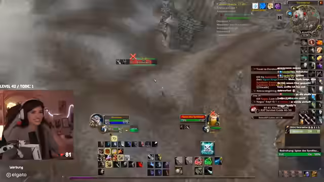 01:34:26Der Streamer kehrt zurück zum Gameplay und versucht, Quests in der Höhle von Zul'Gurub zu erledigen. Dies erweist sich jedoch als schwierig, da das Gebiet stark umkämpft ist. Er ist frustriert über das ständige Risiko, von anderen Spielern überfallen zu werden, und muss seine Taktiken anpassen, um Mobs sicher zu jagen und Quest-Items zu sammeln.