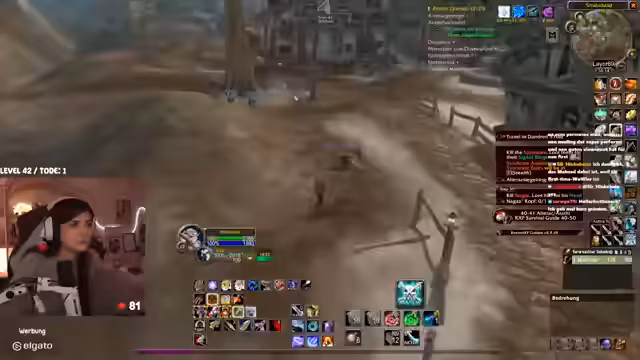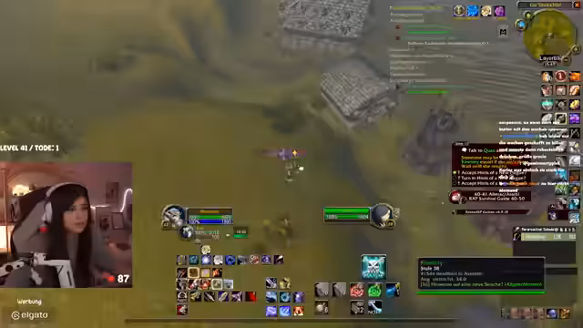 02:12:15Nach einer Pause setzt der Streamer das Leveln fort und ist erleichtert, als ein Weg durch die überfüllte Höhle frei wird. Er versucht, Quests im Umfeld abzuschließen, was jedoch auf Hindernisse stößt. Zum einen sind die Mobs sehr aggressiv und entweichen oft, zum anderen kann er eine wichtige Quest nicht allein bewältigen und sucht vergeblich nach Hilfe in der Gilde.
