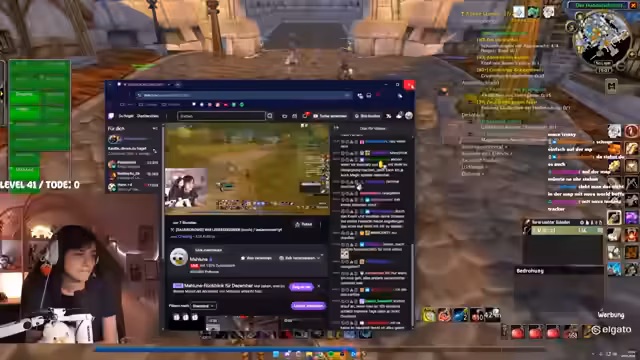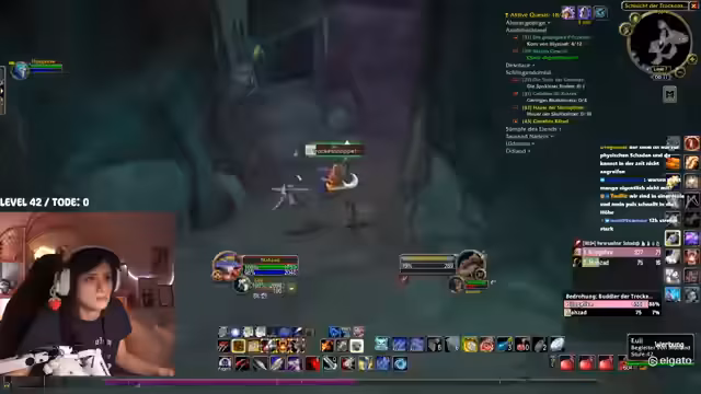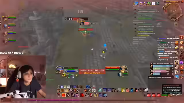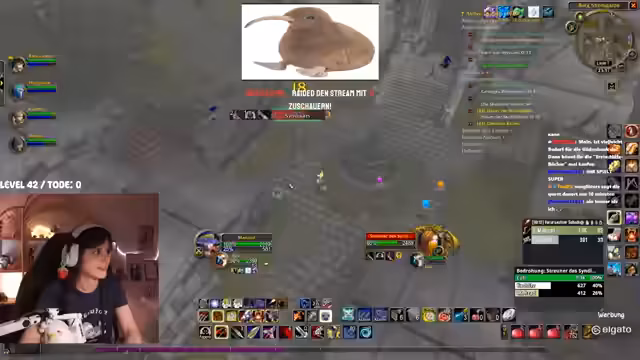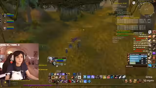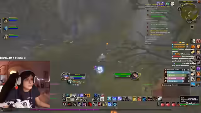 02:09:22Ein spezifisches Event wird thematisiert, bei dem ein Tank in einem Dungeon den Boss angreift, während ein Schurke sein Spellbook geöffnet hat und keinen Schaden macht. Dies führt zu einem Group-Wipe und zeigt Missverständnisse in der Spielmechanik. Der Streamer installiert daraufhin ein Add-on, das ihn bei erlittenem Schaden warnt. Es kommt zu humorvollen Auseinandersetzungen im Chat, wie der berühmte Spruch 'Ich kann mich nicht teilen!' im Kontext von Toden wiederholt wird. Die Stimmung bleibt trotz der Missgeschicke und gelegentlichen Hektik durch das Farming weitgehend locker.