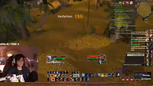 03:07:44Der Streamer geht gezielt die Jagd auf einen Elite-Boss im Schlingendorn-Tal. Er betont die Wichtigkeit von Risikomanagement, indem er zuerst die umliegenden normalen Mobs 'cleart', bevor er den Boss angreift, um nicht von mehreren Gegnern gleichzeitig überwältigt zu werden. Es gibt technische Herausforderungen wie die Sichtbarkeit des Bosses und die Notwendigkeit, auf spezielle Fähigkeiten wie Freeze-Zauber zurückzugreifen. Trotz eines Todes während der Aktion gelingt es schließlich, den Boss zu besiegen und die darauf folgende Quest erfolgreich abzuschließen, was als nice Erfolg gewertet wird.