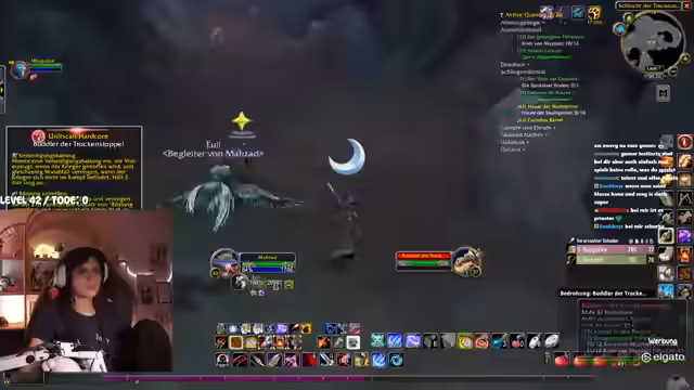 06:37:25Es geht weiter mit dem Leveln im Spiel. Der Streamer befindet sich bei Level 37 und sucht nach neuen Möglichkeiten, Erfahrungspunkte zu sammeln. Er überlegt, nach Desolace oder Schlingendorntal zu reisen, um dort Mobs zu farmen. Er erwähnt auch das Erledigen von Quests wie die Suche nach einer geheimen Muschel und den Kampf gegen Mobs, um die Erfahrungspunkte zu maximieren und sich auf das Erreichen von Level 42 vorzubereiten.