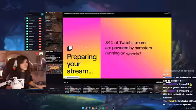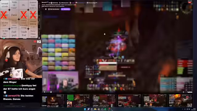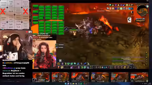 00:38:05Die technische Infrastruktur für den gemeinsamen Stream mit Reaction wird aufgebaut. Über den Discord werden die einzelnen Streams in ein Browser-Tool importiert, um die Live-POVs der Raid-Teilnehmer zu synchronisieren anzeigen zu können. Die Streamerin sucht nach einer bestimmten Person im Chat, Ginny, die sich dem Casting anschließt, was zu einer emotionalen und humorvollen Reaktion führt. Ein Bingo-Spiel für Ereignisse im Raid wird als interaktives Element für die Zuschauer geplant.