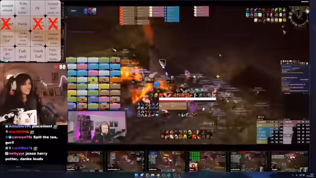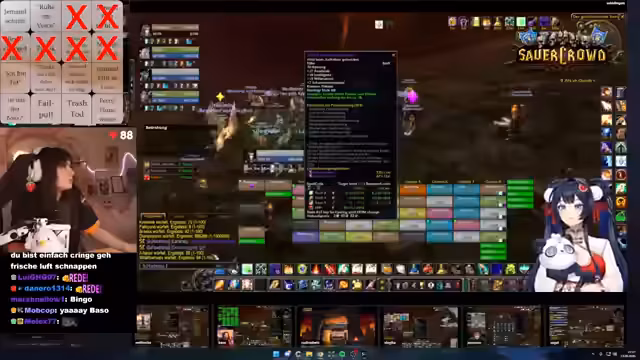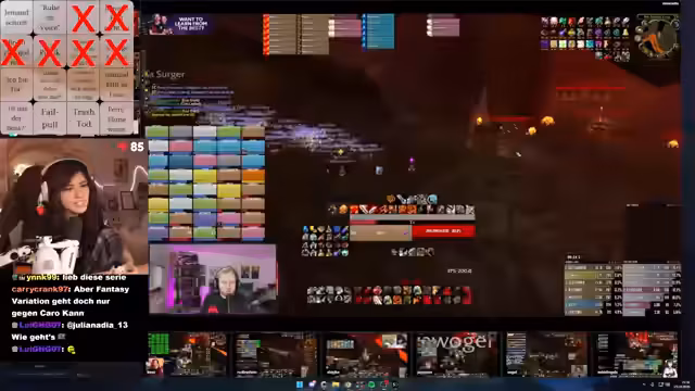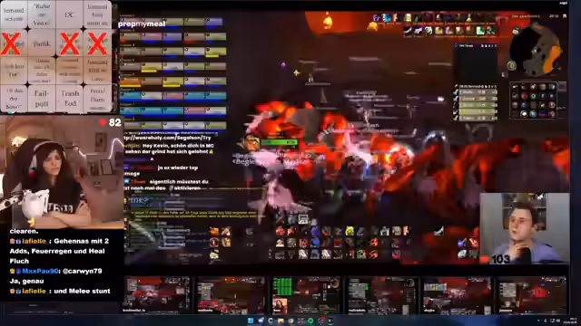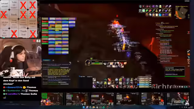 03:01:49Während eines schwierigen Bosskampfs treten massive Probleme mit dem DBM-Addon auf, das keine Warnungen mehr anzeigt. Dies führt zu gefährlichen Situationen, in denen Spieler wie Suki durch das Ausbleiben von Warnungen in Lebensgefahr geraten. Ein Spieler, ohne funktionierende Addons, rettet sich nur durch einen Feuerschutztrang und eine sofortige Bubble. Der Streamer betont die emotionale Intensität des Hardcore-Raidings und den Wert von Add-ons wie BAM Mod, die kritische Hits visuell und akustisch signalisieren.