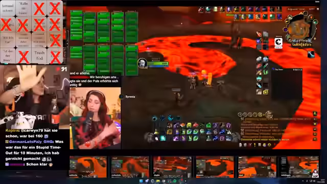 00:07:54Der Stream beginnt mit dem Eintritt in den organisierten zweiten Molten-Core-Raid. Die Streamerin ist aufgrund ihrer Erschöpfung nach dem ersten Raid und einem angeblichen Foodkoma nervös. Ihr Puls liegt dauerhaft über 110, was die Anspannung zeigt. Sie erklärt, dass der zweite Raid ein Lernmoment für sie ist und sie sich mehrere Blickwünsche ansehen möchte. Zudem wird erwähnt, dass 200 Gold gespendet wurden, um den Raid zu ermöglichen und die Ausrüstung der Teilnehmer sicherzustellen.