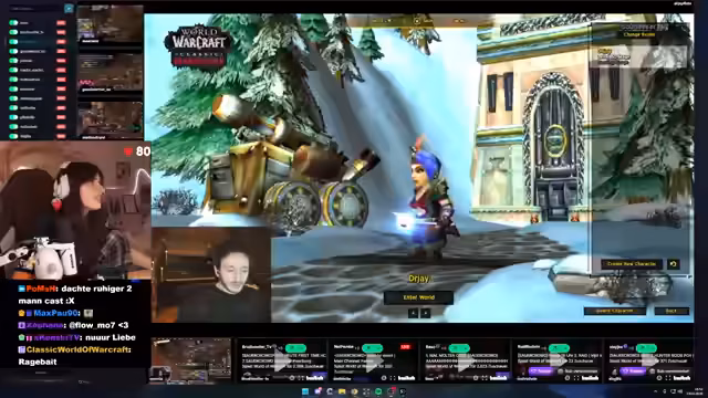01:31:44Während einer Pause werden die Spieler ausgeloggt, um während des Portvorgangs die Quest abzuschließen. Der Streamer ist erleichtert, als der Raid wieder anläuft und niemand beim Einloggen gestorben ist. Es werden die World Buffs verteilt und der Fokus liegt auf dem ersten Boss, der mit Regenerationstränken angegangen wird, da ein Warlock fehlt.