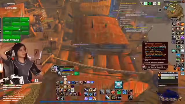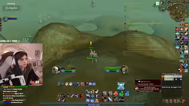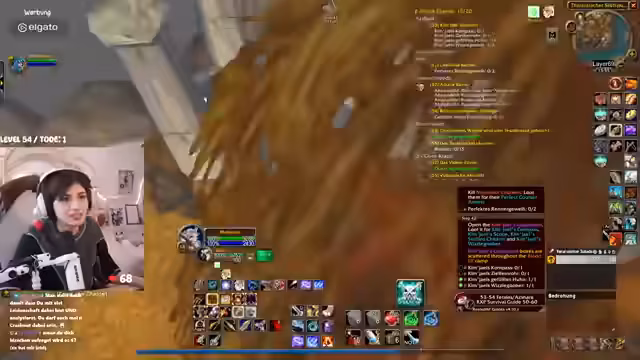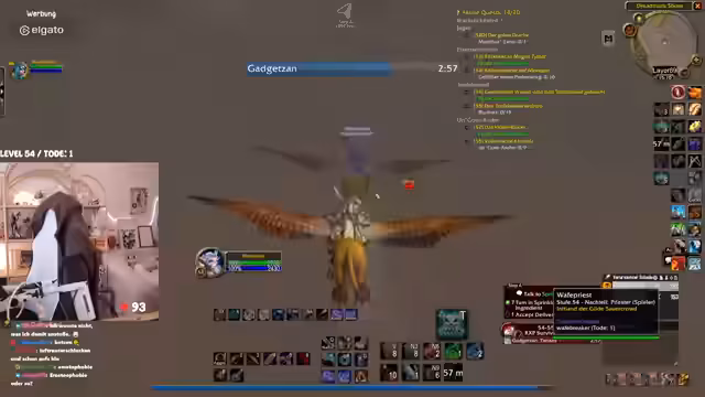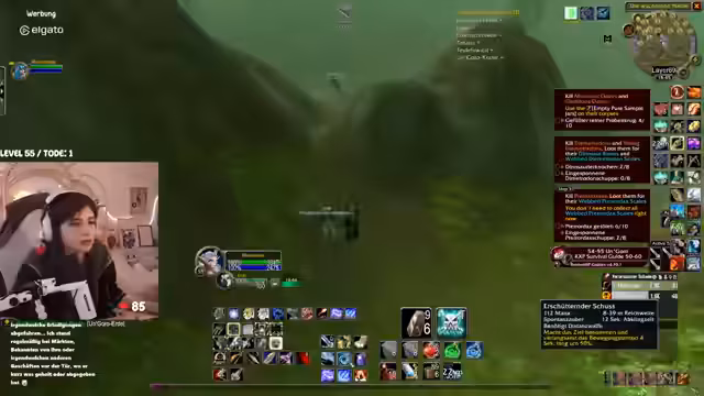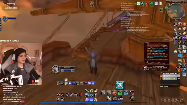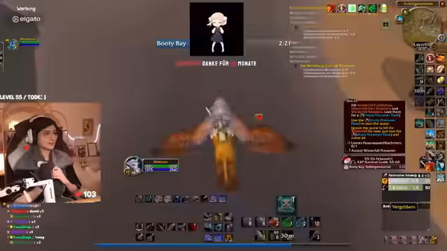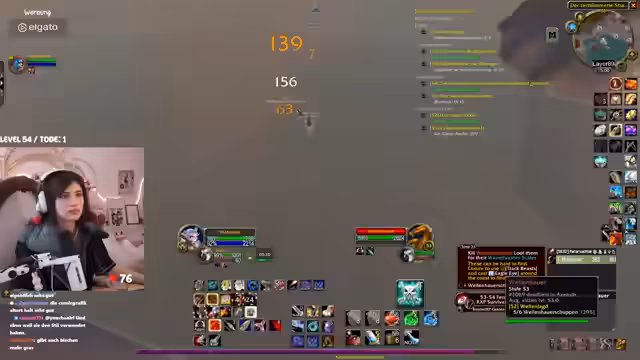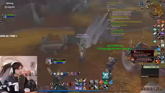 06:44:08Schließlich wechselt der Stream zurück zum Thema Gaming, konkret zum Questing in World of Warcraft im Gebiet Winterspring. Er beschreibt, wie er und sein Gegenüber Quests gemeinsam erledigen, insbesondere das Sammeln von Federn. Die Szenarien reichen von unkompliziertem Sammeln bis zu hektischen Kämpfen gegen mehrere Gegner gleichzeitig und verdeutlichen das kooperative und gelegentlich chaotische Gameplay.