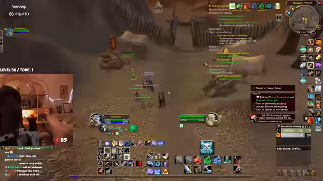 01:16:03Der Streamer konzentriert sich auf die Jagd nach Quest-Items in der Region Tanaris. Hauptziel sind die Donnerkopfflügler, deren unfreundliche Natur als Hindernis beschrieben wird. Es geht konkret um das Finden und Töten dieser Kreaturen, um Questgegenstände wie den 'Mooshoof Cursor' zu looten. Die teils knappe Spawn-Rate der Gegner und das mitunter unsichere Drop-Verhalten der Kisten sorgen für Herausforderungen. Die Koordination mit dem Chat wird gezeigt, um die Jagd zu optimieren und Quest-Fortschritt zu machen.