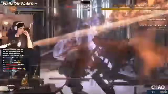 02:25:08Der Fokus verlagert sich auf die Soulkeepers-Veranstaltung, bei Dark Souls 3 gespielt wird. Die Streamerin absolviert einen Trainingsrun, der von mehreren Toden geprägt ist, darunter auch durch einen Bug. Sie zeigt unterschiedliche Strategien gegen Bosse wie die Tänzerin und den Pontiff Sulyvahn, kommentiert ihre Leistung und die Clips anderer Teilnehmer. Besonderer Fokus liegt auf der Herausforderung, ohne zu sterben abzuschneiden.