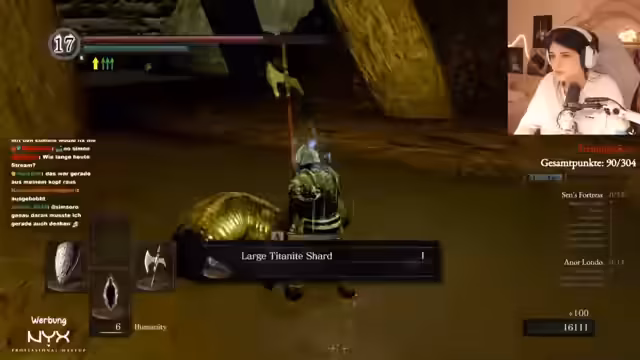 02:34:06Die Minecraft Session war entspannt und kurzweilig. Danach konzentrierte sich die Streamerin auf Dark Souls, um sich auf einen bevorstehenden Run vorzubereiten. Dabei wurden verschiedene Gebiete erkundet, darunter die Teckel-Ratte, wo sie überrascht feststellte, wie viel diese aushält, was zu der Vermutung führte, dass sie gepatcht wurde. Es wurden Drops gesammelt und festgestellt, dass die Gegner Scherben droppen können. Die Streamerin erwähnte, dass sie kürzlich im Fernsehen bei Kika zu sehen war, was sie sehr freute und als coole Erfahrung empfand. Sie testete verschiedene Waffen gegen den Gaping Dragon, wobei der Chat Ratschläge gab. Es wurde überlegt, ob die Hellebarde mit Goldfett oder das Drachenschwert besser geeignet wäre. Während des Kampfes gegen den Gaping Dragon experimentierte sie mit verschiedenen Strategien und hatte Schwierigkeiten, Schaden zu verursachen. Am Ende gelang es, den Boss zu besiegen, wenn auch auf eine unkonventionelle Art.