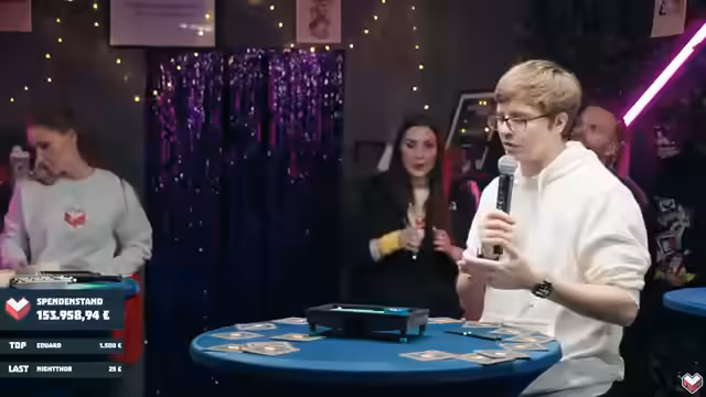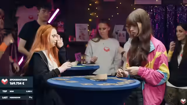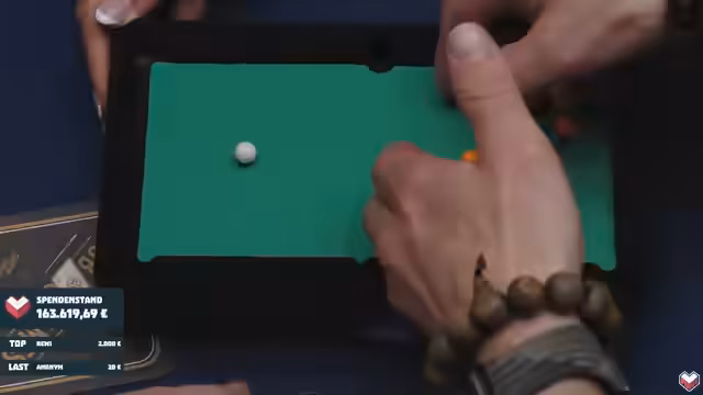 01:29:46Maluna erzielt die erste Top-Score von 30 Punkten im Pinball, was die Frage aufwirft, ob die getroffene Kugel aus dem Ring genommen werden sollte, um als Hindernis zu dienen. Während die Spieler um Punkte kämpfen, wird die Community dazu aufgerufen, die 170 Euro voll zu machen und die 250 Euro zu knacken. Es wird darauf hingewiesen, dass die Hoodies etwas kleiner ausfallen und T-Shirts normal geschnitten sind. Mango erzielt beim ersten Versuch 10 Punkte, während andere Spieler Schwierigkeiten haben, Punkte zu sammeln. Alea zeigt sich talentiert und erzielt 20 Punkte, was die Hoffnung weckt, die 170 Euro-Marke zu erreichen. Die Spendenstände werden immer wieder eingeblendet, und die Community wird motiviert, die Ziele von 170K und 250 Euro zu erreichen.