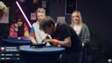 00:08:06Nach dem Quiz wechselt der Stream zum Segment 'Liebling, ich habe die Pubgames geschrumpft'. Es werden vier Teams gebildet, um in verschiedenen Mini-Spielen gegeneinander anzutreten. Das erste Spiel ist ein Mini-Basketball, bei dem die Teams mit Stäbchen Bälle in einen Korb werfen müssen. Ein langes, spannendes Duell zwischen Team 1 und Team 2 entscheidet sich erst nach mehreren Treffern und unter großem Druck vom Chat. Team 1 gewinnt am Ende knapp mit 3:2 und qualifiziert sich für das Finale.