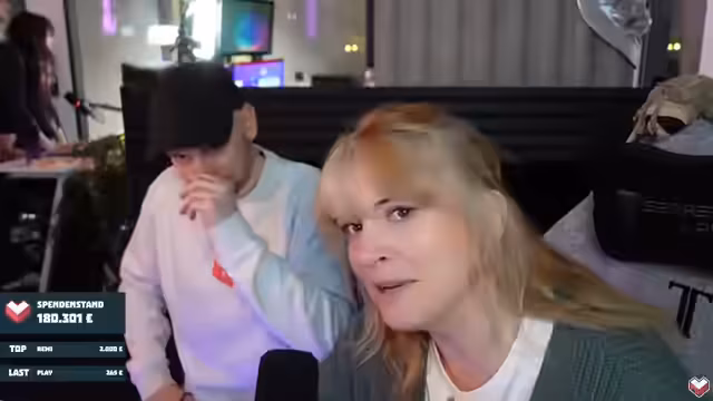 01:14:40Das Finale im Mini-Billard steht zwischen Franzi und Aleja gegen ein anderes Team. Das Spiel ist von Nervosität und kleinen Fehlern geprägt, wie einem Stoß in die weiße Kugel. Trotzdem gelingt es den Teams, Punkte zu sammeln und das Spiel auf Spannung zu halten. Währenddessen erreicht der Stream einen neuen Spendenmeilenstein und der Countdown zum nächsten, großen Spendenziel läuft. Am Ende kann sich ein Team durchsetzen und steht als Sieger der Mini-Pub-Games fest.