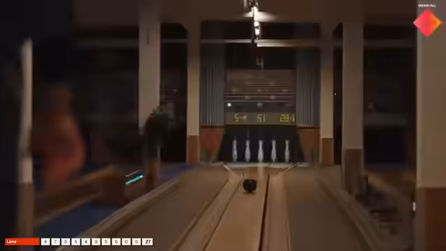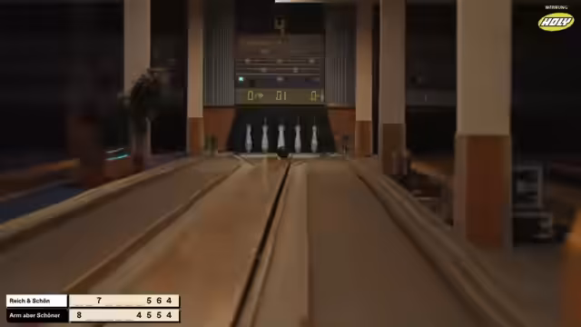 00:46:55Die erste Spielerin des Events, Lara, beginnt den Wettkampf mit einem starken Auftakt und erzielt als Erste bereits eine Neune (9 Punkte). Die Werfe der Teilnehmer werden live kommentiert, wobei auf taktische Feinheiten und die Herausforderungen einer Bohlebahn eingegangen wird. Die Punktestände werden kontinuierlich verfolgt und die Teilnehmer erhalten Tipps von erfahrenen Keglern.