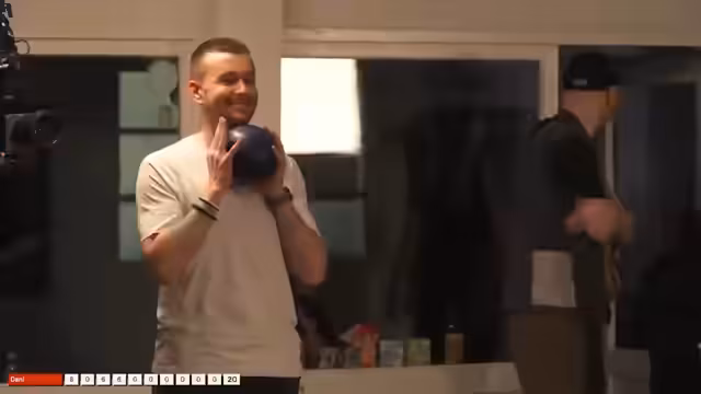 00:53:28Paul zeigt mit konstanten Würfen, insbesondere mit einem 7er Schnitt, herausragende Kegelfähigkeiten und avanciert zum bisherigen Spitzenreiter. Er hebt sich deutlich vom Durchschnitt der Teilnehmer ab, was sein Talent und die gute Vorbereitung auf das Event unterstreicht. Olli und Dani folgen, wobei Dani trotz einer Null in einer Runde mit einem 6,4er Schnitt beachtliche Leistungen zeigt und Paul knapp punktemäßig folgt.