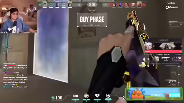 01:47:57Mazat wird angerufen, um Chamber zu erklären, da der Streamer den Charakter ausprobieren möchte. Es wird festgestellt, dass das Spendenziel von 2000 Euro erreicht wurde und ein neues Ziel benötigt wird. Der Streamer fügt ein Textfeld hinzu, um das Spendenziel auf 2000 zu setzen. Es wird ein Clip von einem Ace in Valorant gezeigt. Tim betritt den Call und erklärt sich bereit, beim Coaching zu helfen. Der Streamer äußert seine Begeisterung darüber, dass Tim dabei ist, da er den Charakter als Schüler aufgibt. Es wird besprochen, wie Chamber's Fähigkeiten eingesetzt werden können, insbesondere der Teleport, um sich in günstige Positionen zu bringen und sich schnell zurückzuziehen. Es wird hervorgehoben, dass es auf die Map ankommt, wo man die Fähigkeiten einsetzen kann. Der Revolver sollte in der ersten Runde gekauft werden. Es wird besprochen, dass es früher zwei Teleporter gab, was sehr gut war.