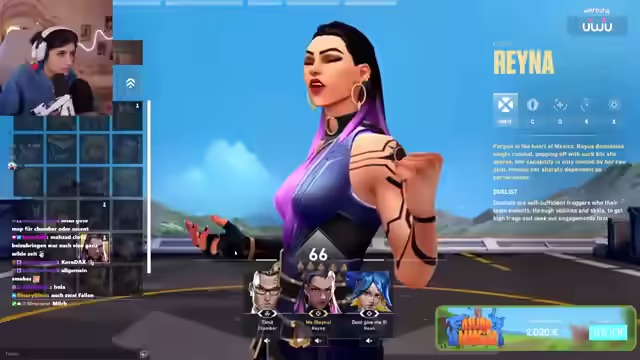 00:32:51Die Valorant Coaching-Session mit Lukas beginnt. Es wird festgestellt, dass Skins den Skill verbessern. Es wird über Lieblingswaffen gesprochen und Lukas' frühere CS-Erfahrung erwähnt. Die Basics des Spiels werden erklärt, einschließlich Crosshair-Placement und Game Sense. Es wird betont, dass Duelisten wie Yoru nicht hinten bleiben, sondern auf den Platz rennen und Platz einnehmen sollen. Es wird vorgeschlagen, Chamber oder Rayna anstelle von Yoru zu spielen, da diese besser zu Lukas' Spielstil passen. Es wird beschlossen, dass Lukas eine Runde Rayna spielt, während die Streamerin zusieht und coacht. Vorher spielen sie noch ein Team-Deathmatch zum Aufwärmen. Es wird über die Fähigkeiten von Rayna gesprochen und Tipps gegeben, wie man sie effektiv einsetzt. Währenddessen werden weitere Spenden angekündigt und die Spender werden herzlich bedankt. Es wird auf die Möglichkeit hingewiesen, über Ausrufezeichen Charity oder Ausrufezeichen Spenden zu spenden.