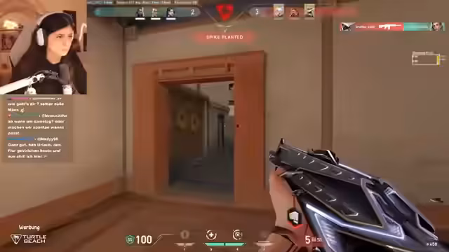 01:22:03Der Streamer und das Team analysieren ihre aktuelle Performance im Spiel. Es gibt Diskussionen über Grafik-Settings, um die Performance zu optimieren, da der Streamer vermutet, dass das Rendern auf niedrigen Einstellungen die Hitboxen beeinflussen könnte. Das Team plant mehrere Runden, die Gegner auf der Karte A zu konzentrieren, während sie den Punkt B als Finte nutzen. Dies wird durch wiederholte Aufforderungen wie 'die kommen B' deutlich gemacht, während der Spieler tatsächlich auf einen Gegner auf A abzielt. Die Kommunikation ist hektisch, aber die Strategie scheint aufzugehen, als sie mehrere Gegner eliminieren und den Spike platzieren können.