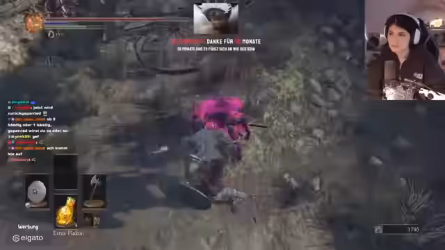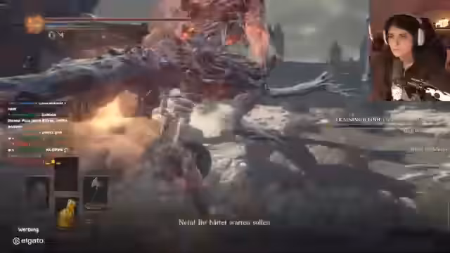 02:11:52Nach einem kurzen Wechsel in das Abyss Watchers-Gebiet konzentriert sich der Streamer auf den Bosskampf gegen Wollnir. Das Hauptproblem besteht darin, an dessen Arme zu gelangen, was als besonders nervig und frustrierend beschrieben wird. Der Streamer versucht, den Boss zu treffen, scheitert aber mehrfach und ist sichtlich über die ungenauen Treffer und die missglückten Manöver verärgert.
