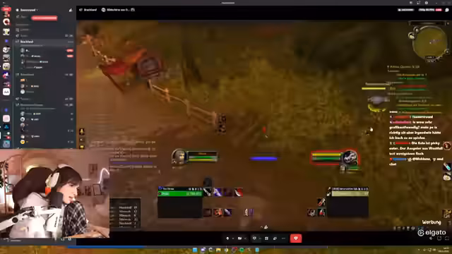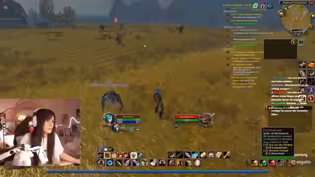 04:58:56Die Streamerin diskutiert ihre Bewegungstaktik im Spiel und bevorzugt seitliches Laufen gegenüber rückwärts, um langsamere Feinde ausweichen zu können. Sie erkundet die Dunkelküste und cleared komplett die Westphal-Region, bis zu Level 16. Es besteht Unklarheit über die Effektivität des Jäger-Levels im Vergleich zu ihrem Krieger. Sie sucht gezielt nach bestimmten Monstern wie dem jungen Geiferzahn, um Quest-Items zu farmen, und bemerkt die Besonderheit, dass auf der Karte keine roten Punkte für Wildtiere, sondern nur für humanoide Gegner erscheinen.