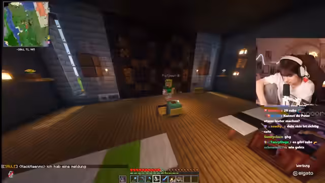 00:15:37Es kommt ein Vorfall mit Hugo zur Sprache, der wegen geduppter Items gebannt wurde. Mahluna erklärt, dass Hugo ihr Netherite-Rüstung, einen Hammer, ein Schwert und einen Bogen geschenkt hat, die vom Schwarzmarkt stammten. Nachdem sie das zu ihrer Base gebracht hatte, wurde sie von Spark konfrontiert, der ihr mitteilte, dass die Items gedupt waren und sie diese zurückgeben musste. Sie gibt die Items sofort zurück und setzt sich sogar für Hugo ein. Dennoch wurde Hugo gebannt, und Mahluna betont, dass sie mit der Situation nichts zu tun hatte und nur einer netten Geste gefolgt war.