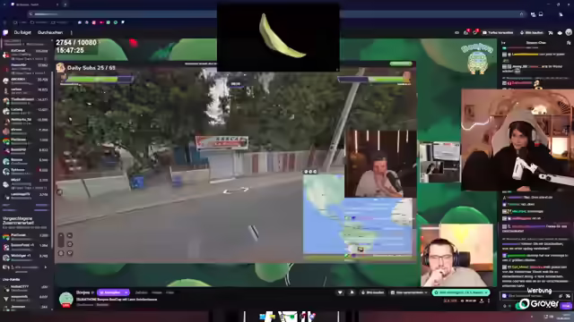 02:17:54Technische Probleme mit der Szene werden erwähnt, und ein Neustart wird in Erwägung gezogen. Es wird festgestellt, dass die Gegner fast fertig sind. Ein neuer Link wird erstellt, und es wird versucht, dem laufenden Spiel erneut beizutreten. Die Frage wird aufgeworfen, was passiert, wenn beide Spieler keinen Guess abgeben. Es wird überlegt, ob Leon noch anwesend ist. Die Frage wird an Leon gestellt, ob ein neuer Link erstellt werden soll oder ob man keinen Guess abgeben soll. Es wird vorgeschlagen, entweder denselben Ort exakt anzugeben oder nichts zu gessen. Die Entscheidung fällt, nichts zu gessen. Eine Ahnung von Osteuropa wird geäußert. Die Strategie, super schnell zu gessen, wird erwähnt. Vasily hat "Feuer unterm Arsch gemacht". Es wird als geil empfunden, schnell zu gessen. Die Millimetergenauigkeit wird als Ausrufezeichen und Statement gesetzt. Die Sicherheit über den Standort des Gegners wird geäußert. Es wird überlegt, ob man in einem bestimmten Ort war, der fast genauso hieß. Dunkle Dächer werden als Hinweis genannt. Es wird keine Ahnung geäußert und auf zensierte Bereiche hingewiesen. Die Herangehensweise, dunkle Dächer in Luxemburg zu suchen, wird als smart bezeichnet. Die Frage wird aufgeworfen, wie das Auto gefahren ist, da nur Enden zu sehen sind. Die Verzweiflung steigt, und es wird keine Ahnung geäußert. Die Frage wird gestellt, wie man auf den aktuellen Standort gekommen ist. Es wird festgestellt, dass man sich am Meer befindet und nur langsam vorankommt. Es wird spekuliert, ob man anhand der Pflanzen den Standort erkennen kann. Die Sonne und ein Tier werden erwähnt. Es wird kein Plan geäußert, wo man sich befindet. Die Frage wird gestellt, ob der Gegner mit dem Fahrrad unterwegs ist. Es wird festgestellt, dass der Gegner läuft. Es wird nichts gefunden, außer dass der Gegner gegessen hat. Eine Frau in traditionell afrikanischem Gewand wird gesehen, und es wird angenommen, dass der Gegner auch nichts gefunden hat. Es wird festgestellt, dass man in die falsche Richtung gelaufen ist. Die Frage wird gestellt, warum man im Game ist und auf Google Maps landet. Es wird festgestellt, dass der Gegner zu Fuß läuft. Die nächste Runde wird vorbereitet, und es wird festgestellt, dass es 1-0 steht. Es wird überlegt, ob der Gegner schon einmal vernichtet wurde. Die Afrika-Autos werden als sehr ähnlich beschrieben. Es wird festgestellt, dass man in der Pflanze und am Meer ist. Es wird eine schöne Straße und Hunde gesehen. Ein Killer GuardDog wird erwähnt. Es wird festgestellt, dass man nicht vorankommt und feststeckt. Es wird gefragt, was mit einem Riesenpfeil passiert ist. Es wird festgestellt, dass man zurückgeportet wurde. Die Runde wird als komplett verbuggt beschrieben.