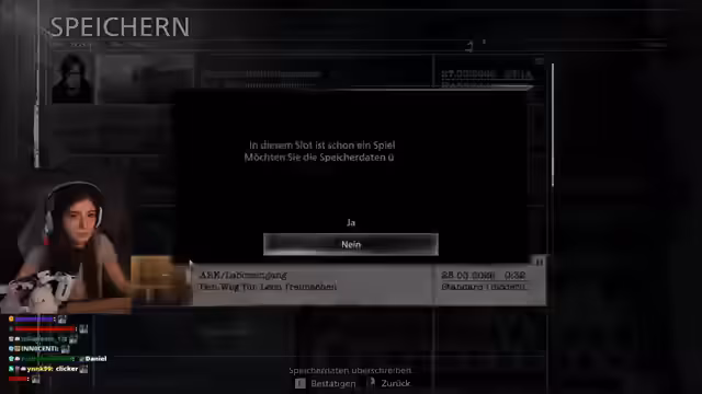 03:27:51Nach intensivem Zocken und mehreren gescheiterten Versuchen in Bloodborne, wechselt Mahluna zu Resident Evil, um das Finale zu spielen. Sie nimmt eine bewusste Pause, um ihre Frustration abzubauen und beim nächsten Versuch fokussierter zu sein. Der Wechsel ins Horrorgenre steht an, um das versprochene Finale zu spielen.