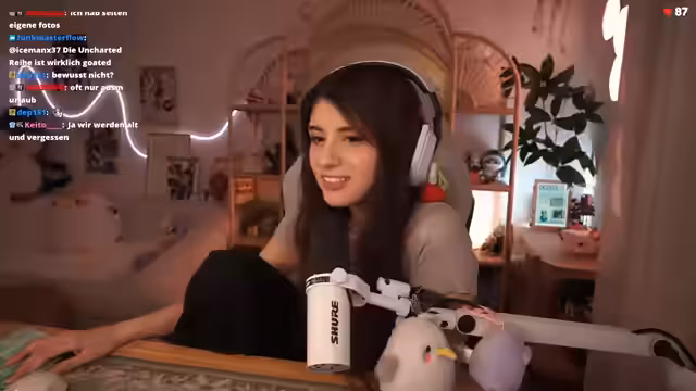 00:10:57Der Stream beginnt mit einem lauten Begrüßungsgeruschel und einem offiziellen Start. Streamerin Mahluna begrüßt ihre Zuschauer und erwähnt, dass sie nebenbei dem Red Bull Zock-Event zuschaut. Sie freut sich, alte Faces wie Hardbrake Kid zu sehen und wechselt kurz zwischen verschiedenen Themen, wie einem Blutstein-Tracker für Bloodborne, den ihr ein Community-Mitglied geschickt hat.