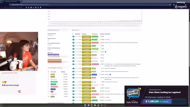 00:18:12Der Live-Stream beginnt mit einer schnellen Begrüßung und der sofortigen Ankündigung einer Spendenaktion. Es wird für 'Charity Royale' gesammelt, eine Initiative, die von 'Vene' und seinem Team organisiert wird. Das aktuelle Ziel ist es, dem sechsjährigen Kian einen Ausflug ins Legoland zu ermöglichen. Kian träumt davon, mit seiner Familie die bunten Lego-Welten zu erkunden, die vielen Figuren und Fahrgeschäfte zu erleben und vielleicht sogar selbst große Bauwerke zu schaffen. Dieser Ausflug soll ihm einen perfekten Tag voller Lachen und Staunen bescheren. Die Aktion ist eine Zusammenarbeit mit Make-A-Wish, die Herzenswünsche schwerkranker Kinder erfüllen. Die Streamerin zeigt sich sehr geehrt, jedes Jahr an dieser Aktion teilnehmen zu dürfen und bedankt sich herzlich bei der Community für die tatkräftige Unterstützung. Es gab wohl eine anfängliche Verwechslung mit einem anderen Legoland-Wunsch, aber die Spenden werden weiterhin für den guten Zweck genutzt.