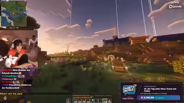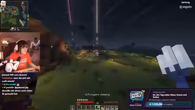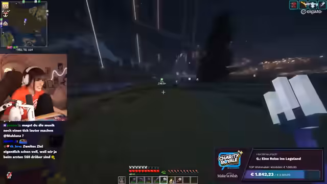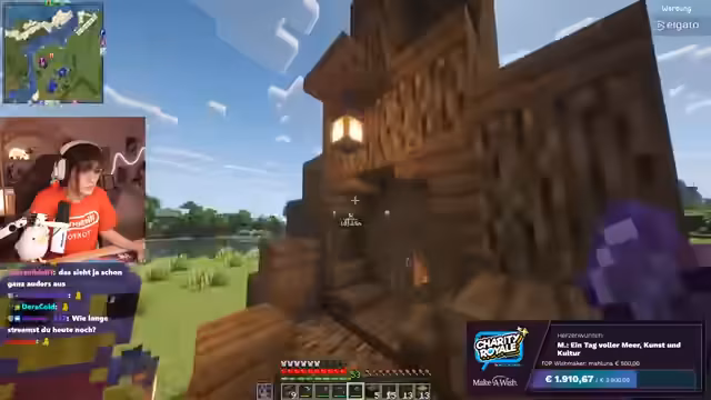 05:02:35Der Stream erhält einen Raid von Connor, dessen Community ebenfalls für einen guten Zweck gesammelt hat. Es wird bekannt gegeben, dass Connors Stream 800 Euro für wohltätige Zwecke gesammelt hat, was auf große Freude stößt. Die Streamerin begrüßt die neuen Zuschauer herzlich und erwähnt, dass sie sich weiterhin im Bau eines Baumhauses auf dem Craft-Attack-Server befindet. Die Spendenbereitschaft der Community wird besonders hervorgehoben, da die Zuschauer direkt von einem Charity-Stream in den nächsten wechseln. Es wird betont, wie wichtig es ist, weiterhin Spenden für Make-A-Wish zu sammeln, auch wenn das aktuelle Spendenziel bereits erreicht wurde.
