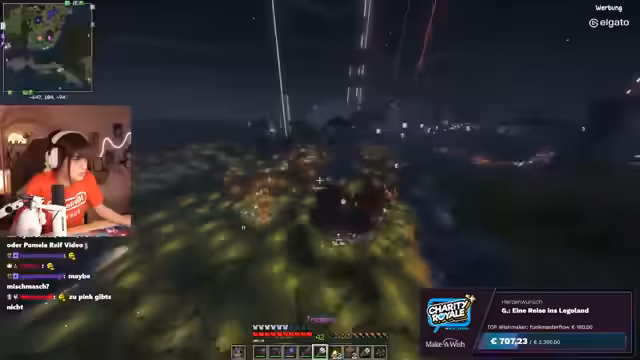 05:47:29Stegi spendet 450 Euro, was für große Begeisterung sorgt und die Streamerin überrascht. Die Community lobt Stegis Großzügigkeit und die allgemeine Unterstützung. Es wird über Skins und das Aussehen gesprochen, wobei die Streamerin ihren Vampir-Skin präsentiert und dieser positiv aufgenommen wird. Zombie spricht über sein eigenes, halbfertiges Bauprojekt und die Einladung von Tamina, auf dem Server mitzubauen. Die Streamerin wird als Jury für das "Dress-to-Impress-Event" am 19. um 20 Uhr eingeladen, was zu humorvollen Bestechungsversuchen führt. Es wird über die Schwierigkeiten beim Bauen und die Notwendigkeit von Ordnung im Spiel und im echten Leben gesprochen.
