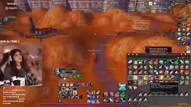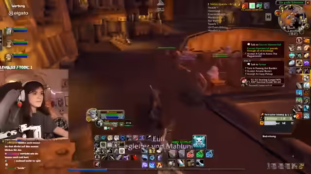 01:24:14Der Stream konzentriert sich intensiv auf den Grind im Spiel World of Warcraft. Die Hauptaufgabe besteht darin, bestimmte Mobs wie Höllen-Eber und Geier zu jagen, um seltene Drops und Quest-Items wie Gehirne und Muskelmagen zu farmen. Der Streamer teilt mit, ihm fehlen noch zwei Mobs, um eine Liste zu vervollständigen, und betont die Effizienz des Tötens, da es im Spiel nie verkehrt sei. Er äußert zudem seine Frustration über den Spielspaß, der ihm trotz intensiver Nutzung scheinbar verloren geht, und vergleicht dieses Gefühl negativ mit League of Legends, das er als 'Hate Gaming' empfindet, da er dort nur noch Wut verspürt.