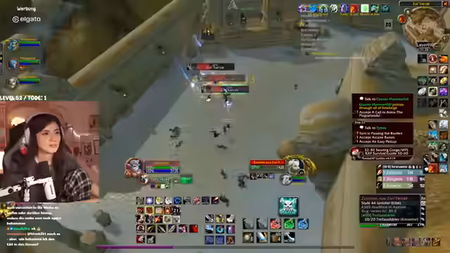 04:30:50Ein Fokus des Streams liegt auf der Gruppenstrategie für den Princess-Run. Der Streamer diskutiert die Notwendigkeit, aufmerksamer zu spielen, und erwähnt den erfolgreichen Tank der Princess mit Parla in der Vergangenheit. Es wird die Rolle von Pets, die schnell Hilfe leisten können, besprochen und die Gruppe beschließt, die Gräber nun einzeln abzuarbeiten, um sicherzugehen. Eine Anfrage im Chat zur Gazrilla-Quest wird positiv aufgenommen, um die Quest zu teilen.