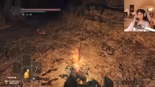 02:52:23Der Streamer kehrt zur Truhe mit dem Lebensstein und einem weiteren Item zurück, das auf der Wurzel liegt, betont aber, dass nichts Wichtiges mitgenommen werden muss. Danach geht es Richtung Wald, wo das Bonfire aktiviert wird, um das Spiel zu speichern und Ressourcen zu managen. Dabei wird kurz eine Fackel angezündet und versucht, mit einem Sprungangriff auf den Gegner zu reagieren, was aber zunächst nicht klappt.