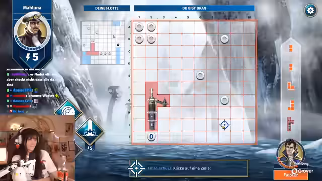 04:01:28Nach dem Abschluss der League-of-Legends-Session wechseln der Streamer und ein Mitspieler zu einem anderen Spiel. Die Stimmung wandelt sich von kompetitiv zu ausgelassen. Ein Spontan-Spiel von Schiffe versenken wird gestartet, das anfangs durch technische Unannehmlichkeiten und Missverständnisse geprägt ist, jedoch schnell zu einem unterhaltsamen Wettkampf wird.