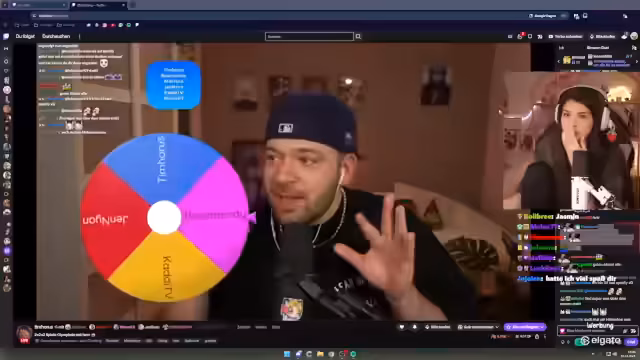 00:39:54Der Streamer moderiert ein 2v2v2-Turnier mit Browser-Games wie Geoguesser und Schiffe versenken. Eingeladen sind Gäste wie Jen, Kaddi, Minuself, Rose und Tim. Das Event startet mit der Teamauslosung, bei der Zweierteams gebildet werden. Der Gewinner des Gesamtturniers erhält Subs von den unterlegenen Teams, was als Anreiz dient. Alle Teilnehmer werden per Stream Together in den gemeinsamen Kanal eingebunden.