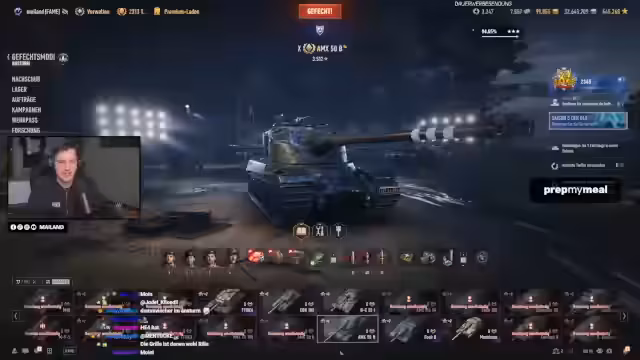 00:37:15Nach der Niederlage wird über die Vor- und Nachteile verschiedener Panzer im Ansturm-Modus gesprochen, wobei der T57 als Geheimwaffe und die E4 als stark eingestuft werden. Der Streamer bemängelt die steigende Einsteigerhürde und die zunehmende Spezialisierung im Modus. Bei einem weiteren Versuch mit dem Fidibi kommt es zu einem Chaosgefecht auf der Batchett-Karte, bei dem sich das Team nicht auf eine Taktik einigen kann. Dennoch wird ein Sieg errungen und der Missionsschritt 'Zerstöre fünf Fahrzeuge' geschafft, was der Moral dient.